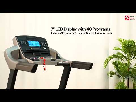 The 7” LCD blue screen display delivers real-time metrics and offers 36 preset programs, 3 user programs, and 1 manual mode. Bluetooth compatibility allows you to play music, connect fitness apps like Kinomap, Zwift, and Anyrun, and access heart rate control features.