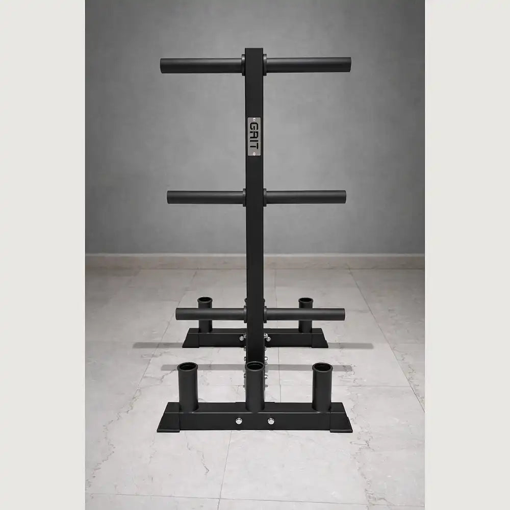 Space-Saving Design: Compact L x W x H - 63 x 77 x 150 cm dimensions optimize space utilization while accommodating both barbells and weight plates.