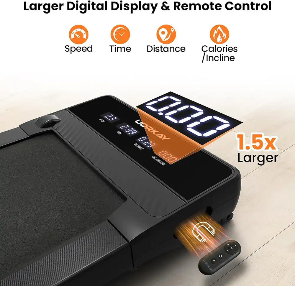 From a Gentle Stroll to a Brisk Jog Whether you're multitasking at your standing desk or fitting in a dedicated cardio session, this treadmill adapts to you. The smooth, quiet motor (0.75HP continuous, 2.25HP peak) supports a versatile speed range from a slow 1 km/h walk to a fast 8 km/h jog.