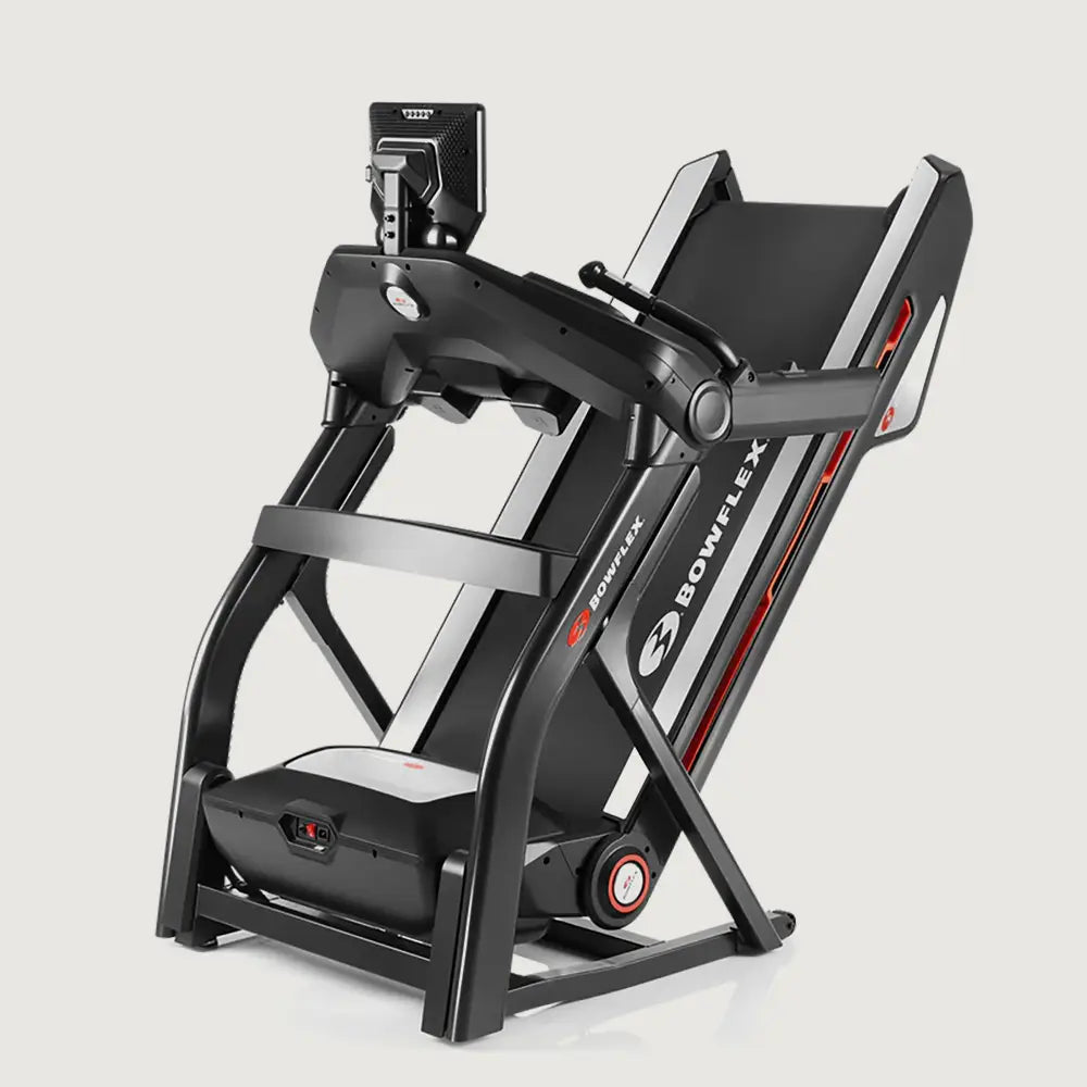The Bowflex Treadmill-25 features a 10-inch interactive console, Comfort Tech™ deck cushioning, SoftDrop™ folding system, and Bluetooth® enabled for smart devices and heart rate monitors (Heart rate armband included).