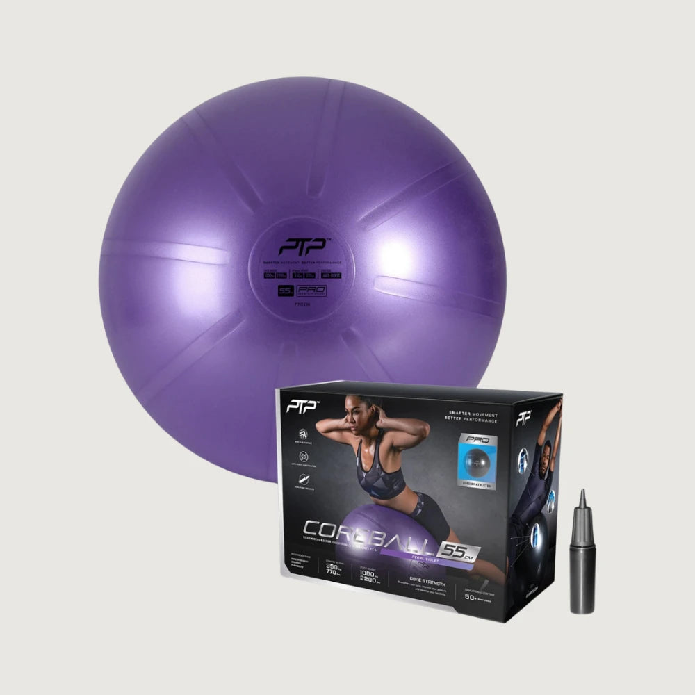 The PTP COREBALL 55CM is a versatile training tool designed to enhance core strength, stability, balance, and flexibility. Perfect for Pilates, strength training, and functional workouts, it challenges your stabilising muscles to improve posture and motor coordination. Its anti-burst structure, non-slip texture, and 1000 kg weight rating ensure safety and durability for all fitness levels. Use it in your home workouts, physical therapy sessions, or even as a replacement for your office chair to promote healthy spine alignment and posture awareness. Includes a handy pump and an exercise guide to get you started right away.