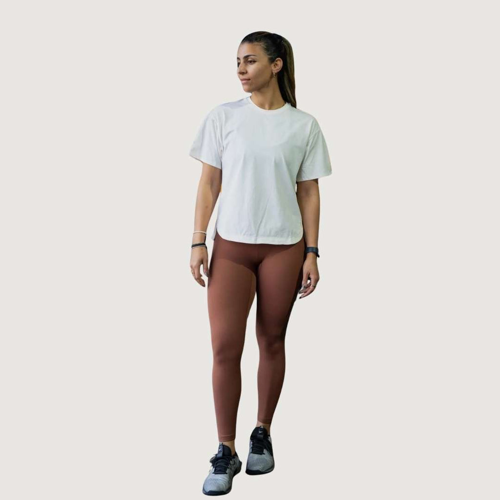 Featuring a wide neckline, flowy short sleeves, and side slits, it allows for maximum airflow and movement without sticking to the skin. Whether you’re stretching in the studio, cooling down post-workout, or simply on the go, the Free Flow Tee delivers all-day comfort with laid-back style.