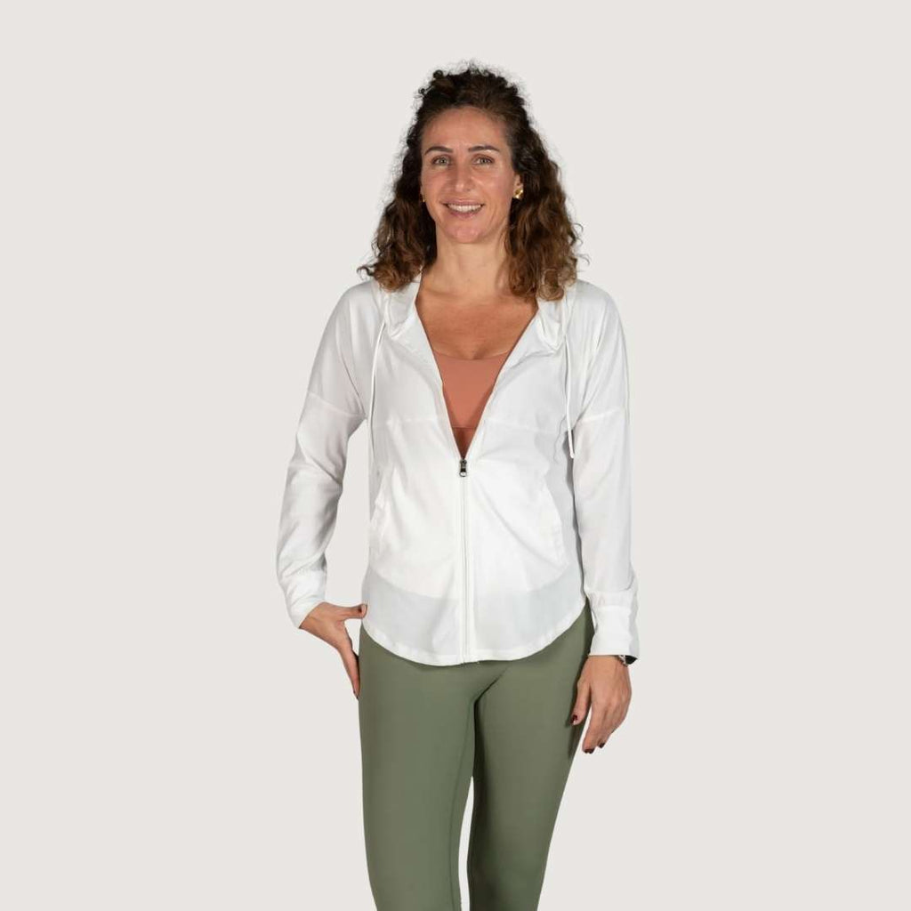 The full front zip offer coverage and control when the breeze picks up, while discreet zippered pockets keep your essentials secure on the go. Sleek enough to style with leggings, shorts, or jeans, it’s the jacket you’ll reach for every time you head out the door.