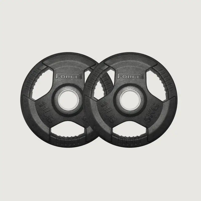 Force USA Rubber Coated Olympic Weight Plates are specifically designed for everyday gym use, featuring an easy-to-use tri-grip design. Whether you're training on a smith machine, power cage, squat racks, or engaging in other free weight exercises, these plates offer effortless plate changes with their ergonomic, tri-grip handles, ensuring safer and more efficient workouts.