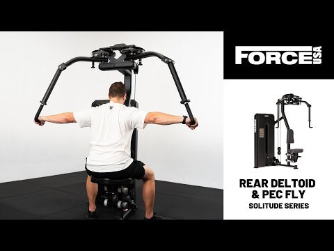 Discover the next level of upper body training with the Force USA SOLITUDE Pectoral Fly / Rear Deltoid machine. Engineered for commercial settings, this dual-function powerhouse effortlessly combines Pec Fly and rear delt movements with swift adjustment features. Built with an impressive 100 kg (220 lbs) pin-loaded weight stack, independent arm movement, and enhanced safety features, allowing for tailored, effective training. Ideal for users of all sizes, this machine delivers versatility, comfort, and durability in one sleek, professional-grade package, making it perfect for achieving targeted strength and conditioning goals in any gym environment.