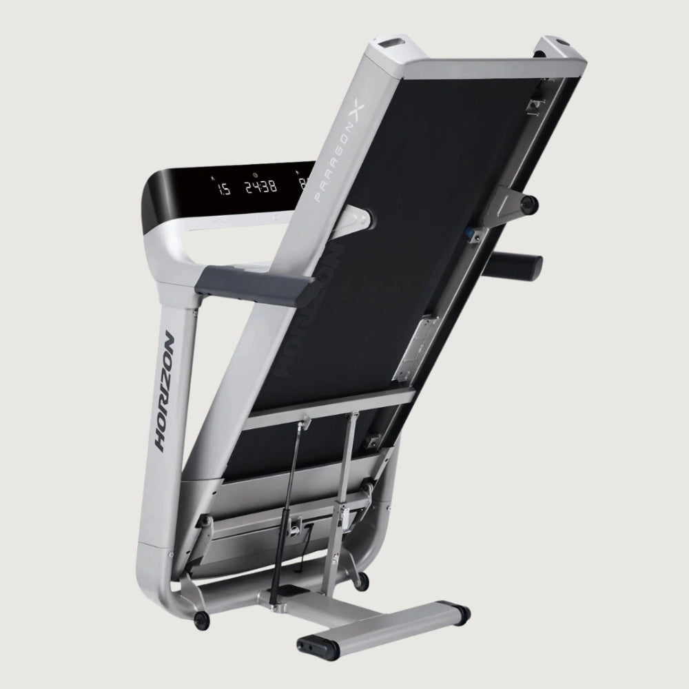 Train like you're on the trail with the HORIZON Paragon X Treadmill, designed to replicate outdoor terrain in the comfort of your home. Featuring exclusive AirTrain Technology, it uses responsive air cushioning and 10 real trail simulation programs to deliver a dynamic running experience. The treadmill pairs seamlessly with the FitDisplay app via Bluetooth, offering workout customization, tracking, and WeChat compatibility. With intuitive one-touch controls for speed and incline and a robust design, Paragon X is ideal for both beginner and advanced trail runners looking to level up their training indoors. Warranty: 1 Year