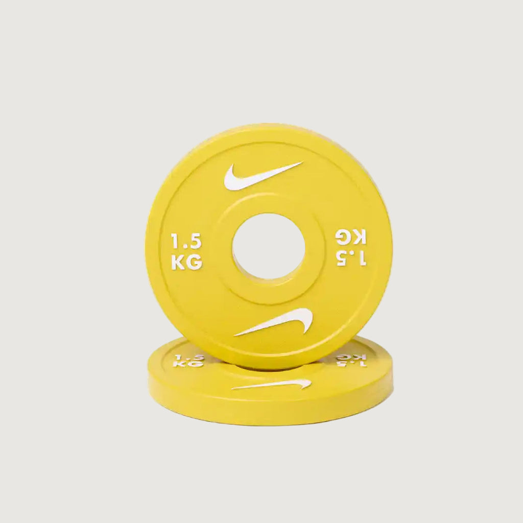 Progress in the gym is made by challenging yourself a little more each day. The Nike Change Plates are a secure, quiet, and durable way to increase weight in small increments. These rubber coated plates are color coded by weight, making them easy to identify. This change plates set includes weights of 0.5, 1, 1.5, 2, and 2.5 KG. In the game of weight training... a little goes a long way! JUST DO IT. *Sold as a single plate