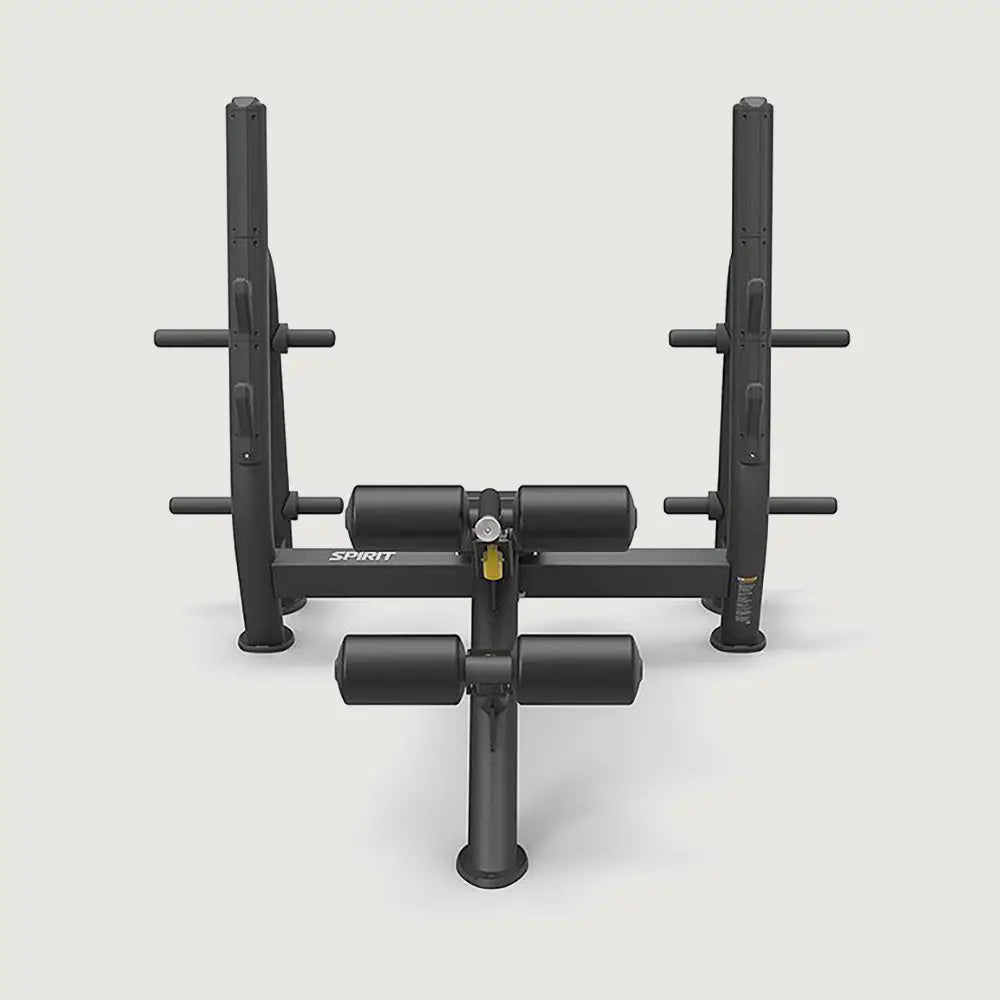 The beautiful Spirit Olympic decline bench is angled at 15-degrees and places the user in the perfect decline position for effective muscle stimulation. A total of 8 weight-storage horns make room for weight plates stored at waist height and help keep the gym tidy.