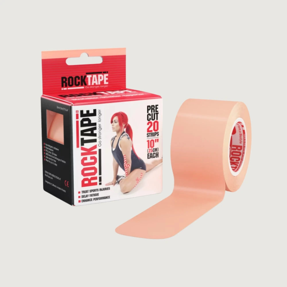 RockTape Precut Beige delivers all the benefits of kinesiology tape in easy-to-use 25cm strips—no scissors required. Ideal for quick taping at home, the gym, or on the go.