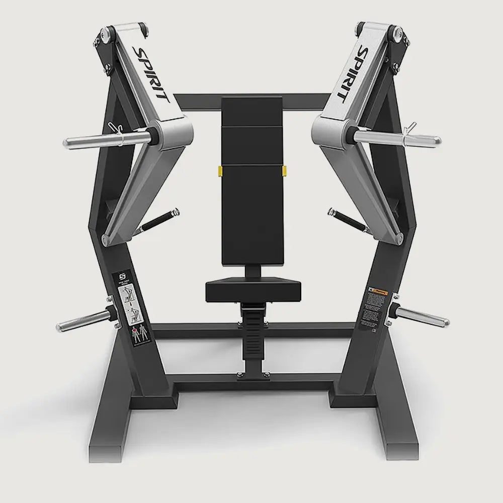 The Spirit Fitness Wide Chest Press is a premium-grade strength training machine engineered for serious athletes and fitness enthusiasts seeking powerful upper body development. Its unique wide-grip handle placement and converging press motion replicate the natural biomechanics of a free-weight decline press while delivering unmatched comfort and control. Designed with a reclined user position and a highly visible alignment marker, it ensures proper form and maximum muscle engagement through every repetition. Built to handle intense, heavy-duty workouts, this plate-loaded chest press combines ergonomic design, durability, and performance precision — making it a perfect addition to any commercial or professional gym setup.