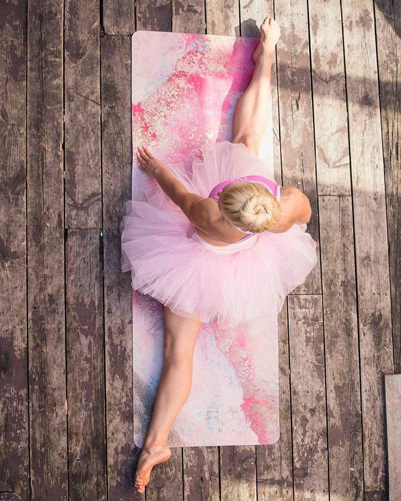 Luxurious designer yoga mat constructed with non-slip, natural rubber and premium synthetic suede top providing anti-slipping grip and protection for all yoga practices. Featuring the exclusive abstract art of Contemporary Artist Julia Contacessi.